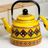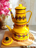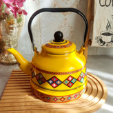 کتری لعابی زرد طرح سنتی
