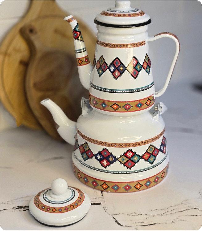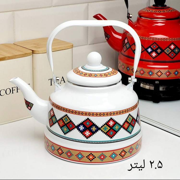 کتری لعابی سفید در حجم دو نیم لیتری جنس لعابی کار وارداتی و با کیفیت عالی