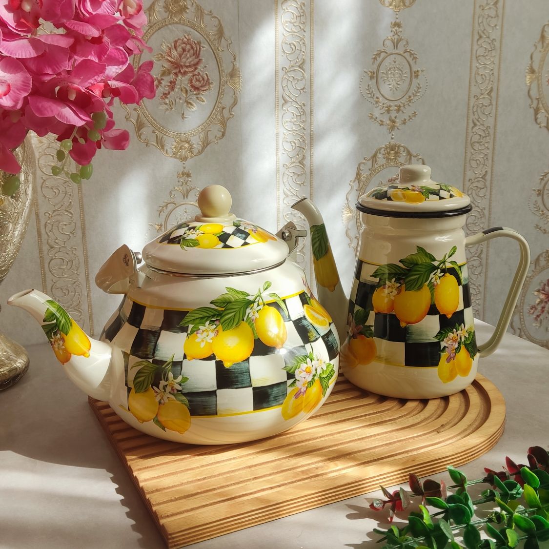 کتری لعابی با طرح لیمو در دو حجم یک و دو و نیم لیتری و دو لیتری با کیفیت بالا و عالی .