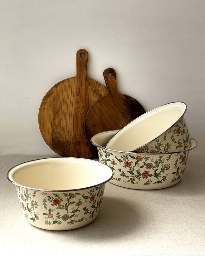 ست سه تایی لگن یا کاسه لعابی با طرح گل های بهاری