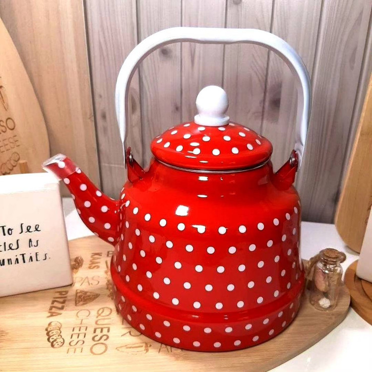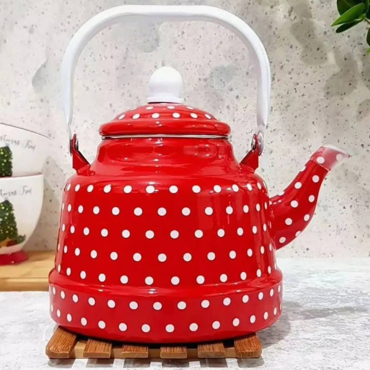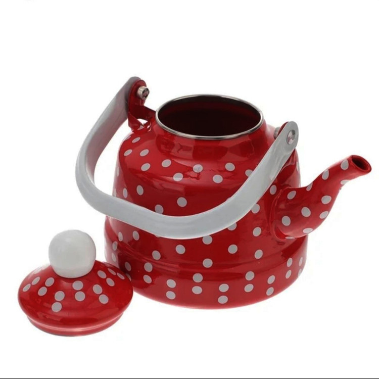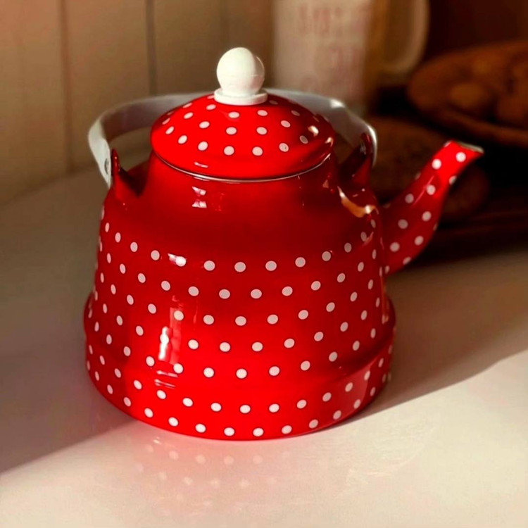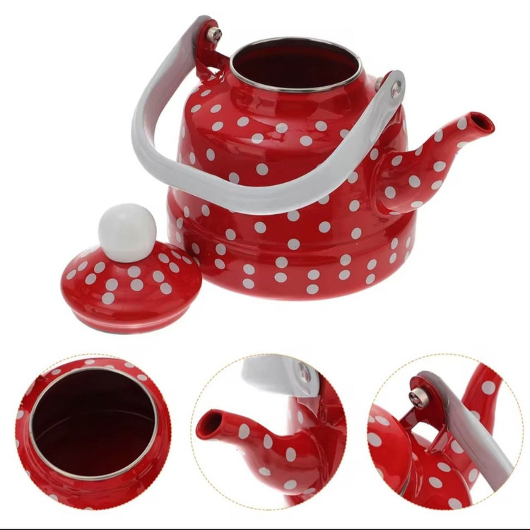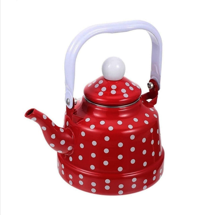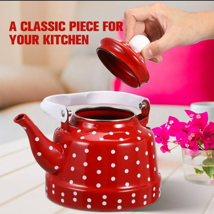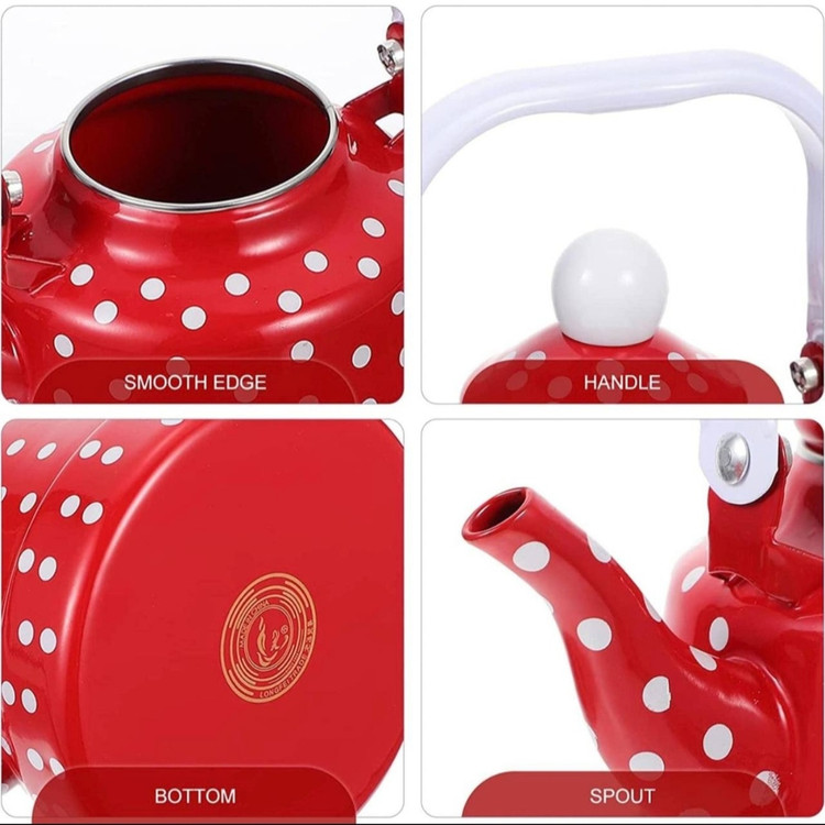 کتری خالدار در رنگ قرمز 1.7لیتر جنس لعابی با کیفیت
