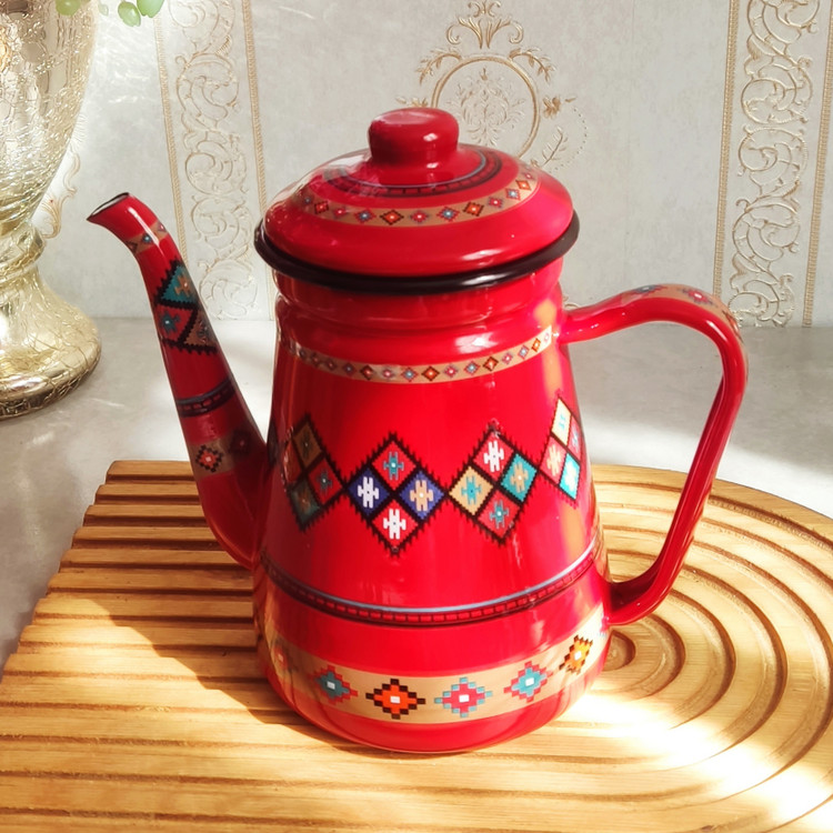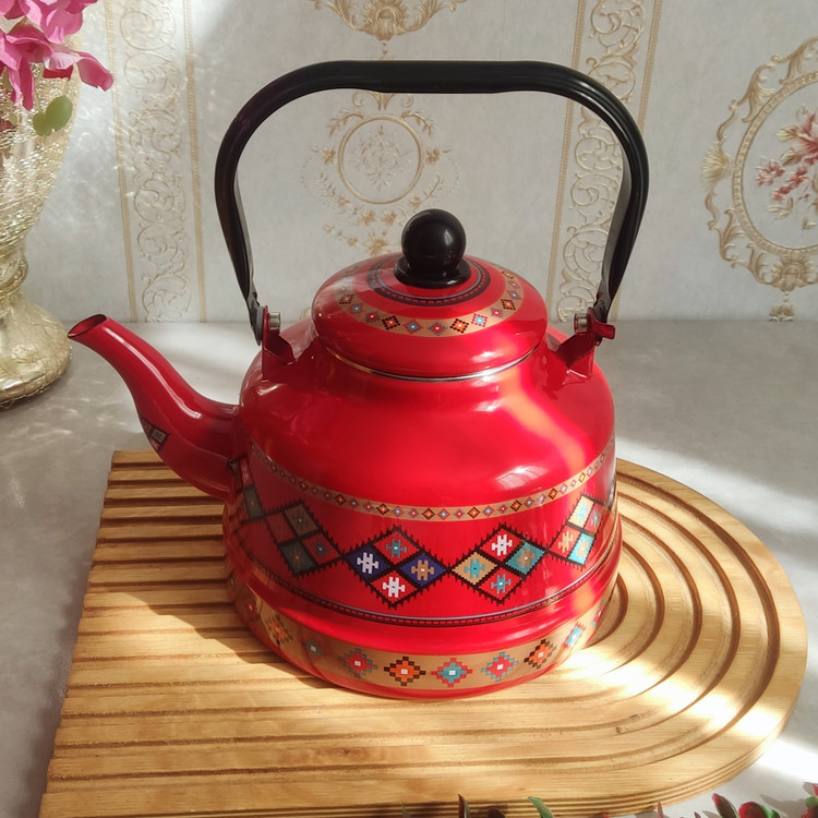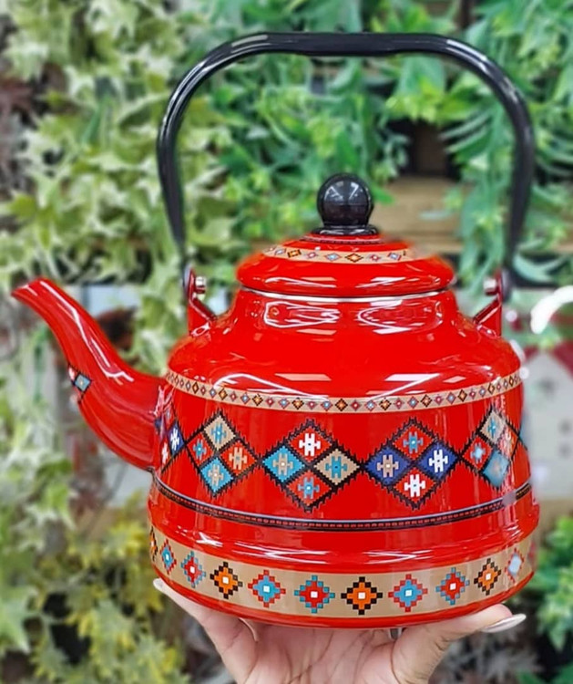 کتری لعابی در طرح سنتی قرمز کار وارداتی در حجم دو نیم لیتری
