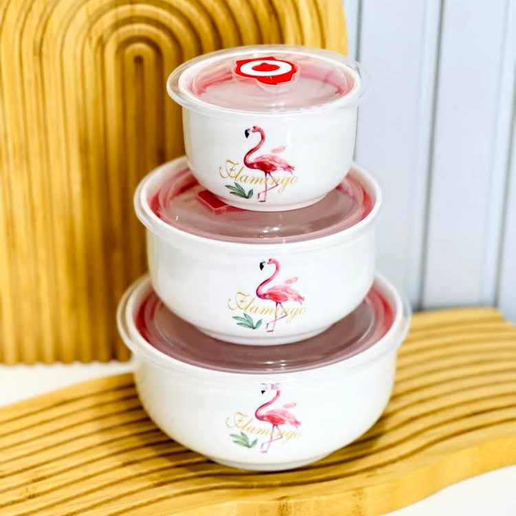 ست سه تایی سرامیکی ظروف نگهدارنده غذا مدل فلامینگو