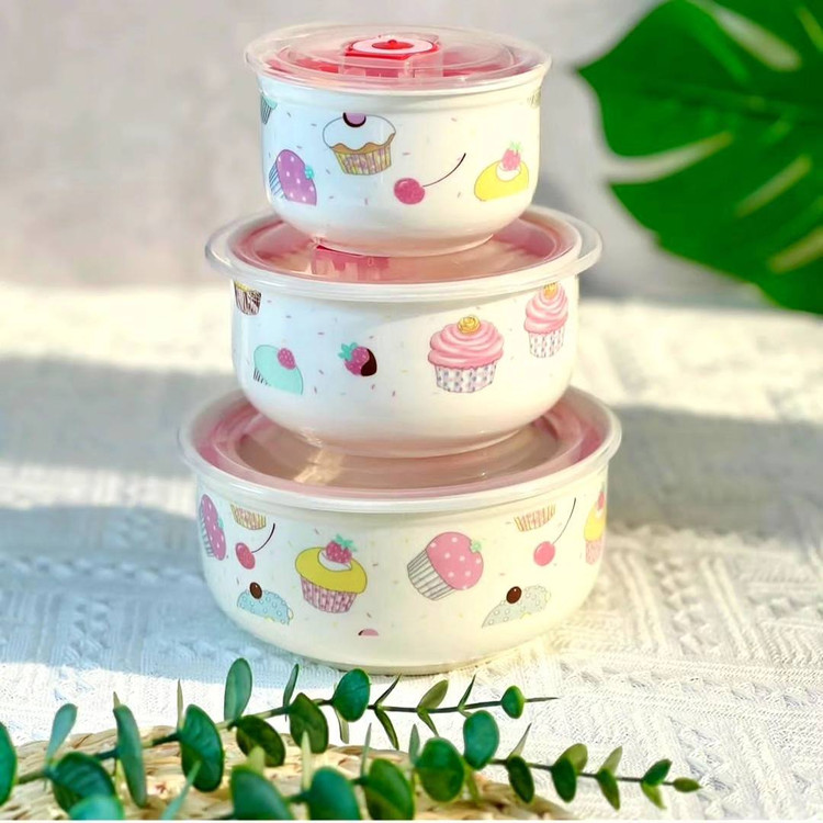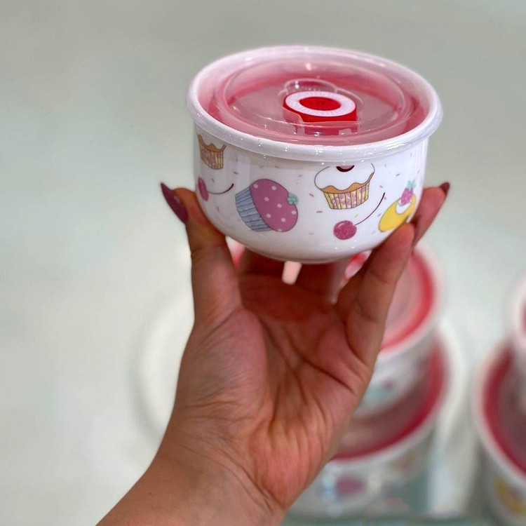 ظروف نگهدارنده سرامیکی کاپ کیکی مناسب برای فریزر و ماکرو ویو دارای سوپاپ بخار در سه قطر کوچک ۱۰متوسط۱۳و بزرگ ۱۶سانتی متر و ارتفاع کوچک۷متوسط ۸و بزرگ ۹سانتی متر ساخت کشور چین و بسیار با کیفیت