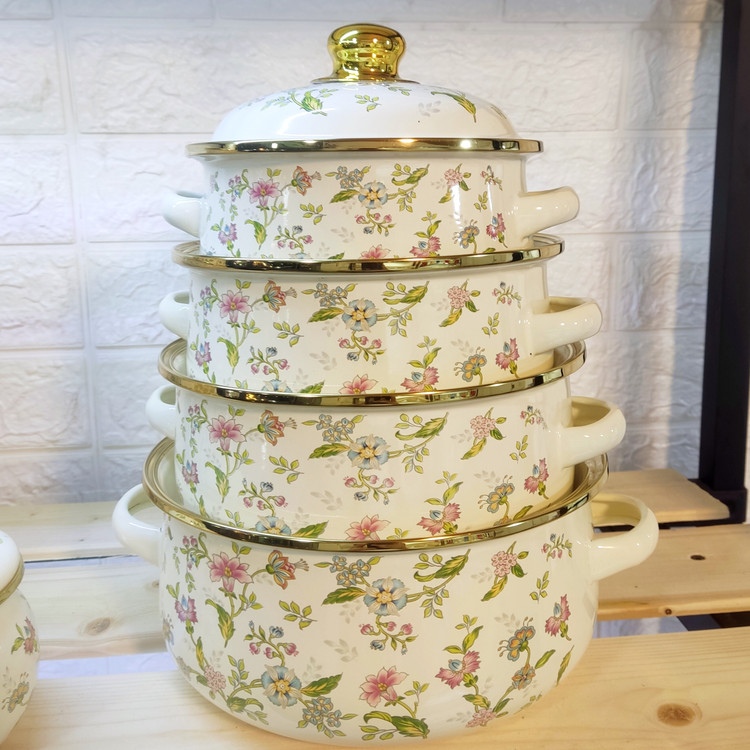 ست چهار تایی قابلمه لعابی گل‌های بهاری