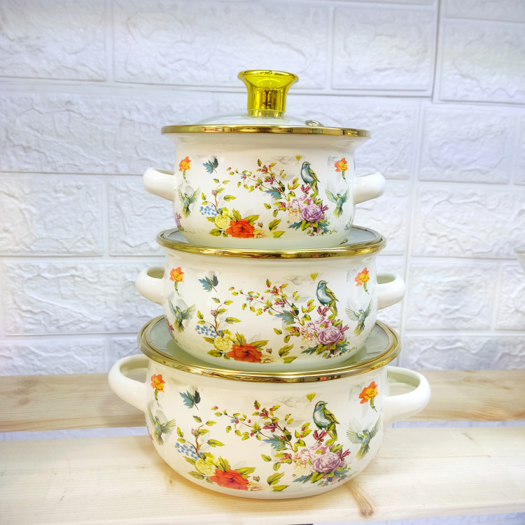 ست سه عددی قابلمه های لعابی درب شیشه ای