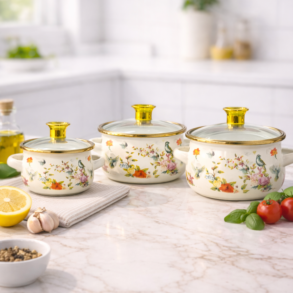 ست سه عددی قابلمه های لعابی درب شیشه ای