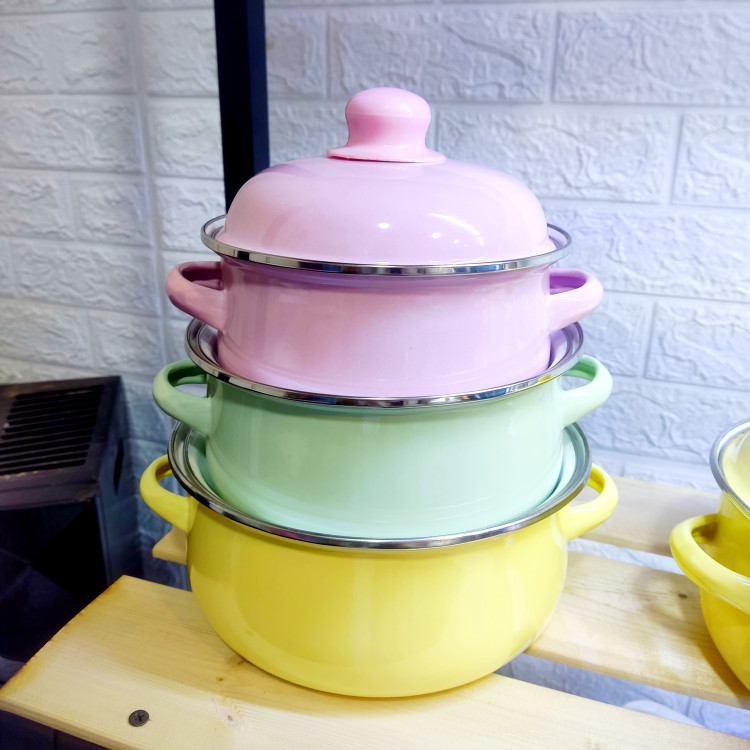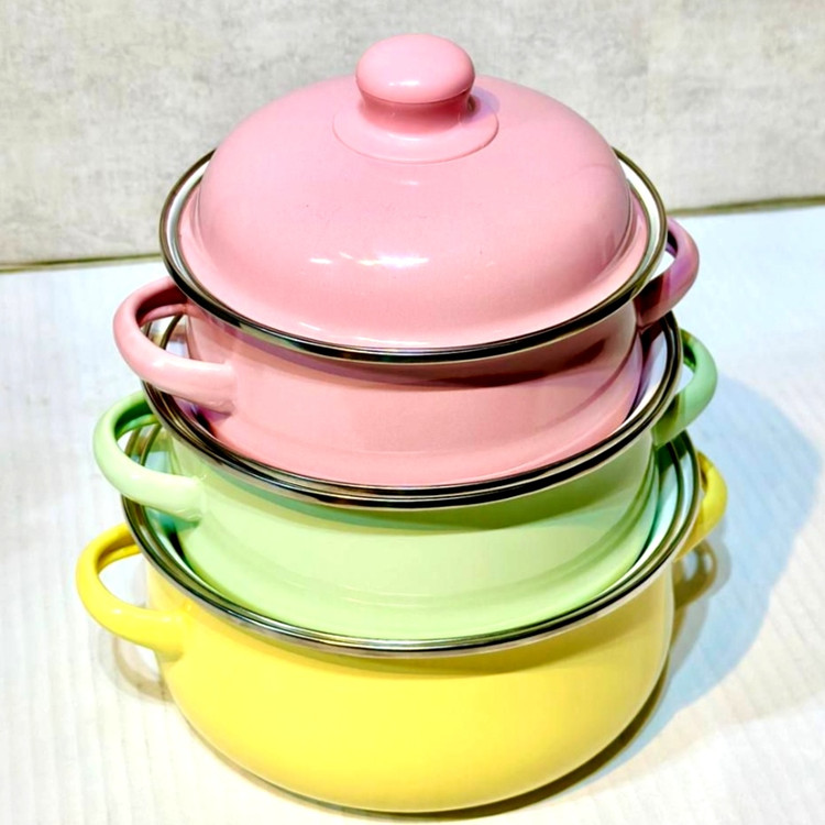 ست سه تایی قابلمه لعابی در رنگ های پاستلی