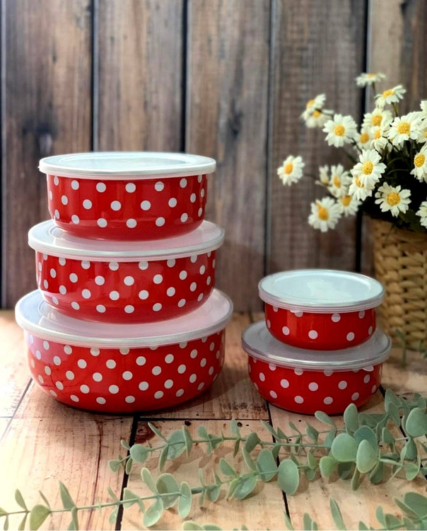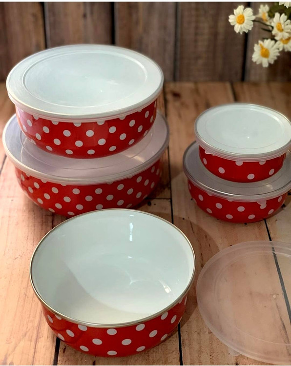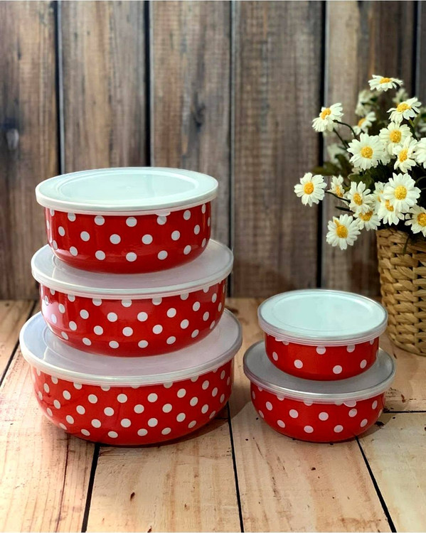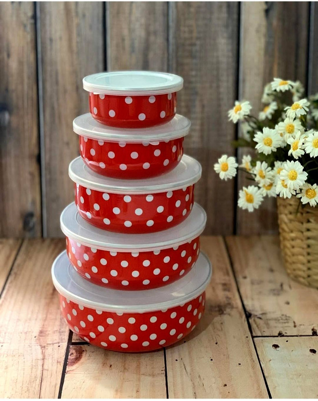 ظروف نگهدارنده لعابی پنج تکه با درپوش پلاستیکی در قطر های 10_12_14_16_18