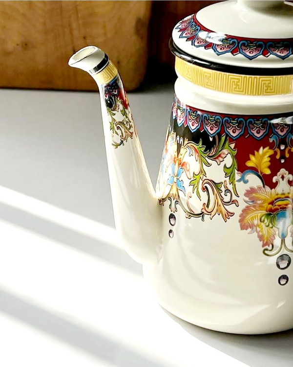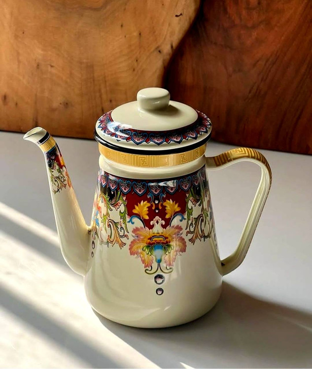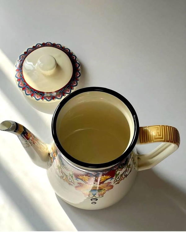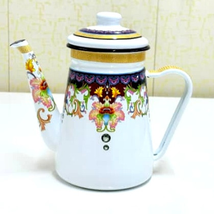 کتری لعابی کار وارداتی با کیفیت بالا ارتفاع کار 19قطر دهانه 9سانت قطر کف 12سانت سانت قابل استفاده روی شعله مستقیم